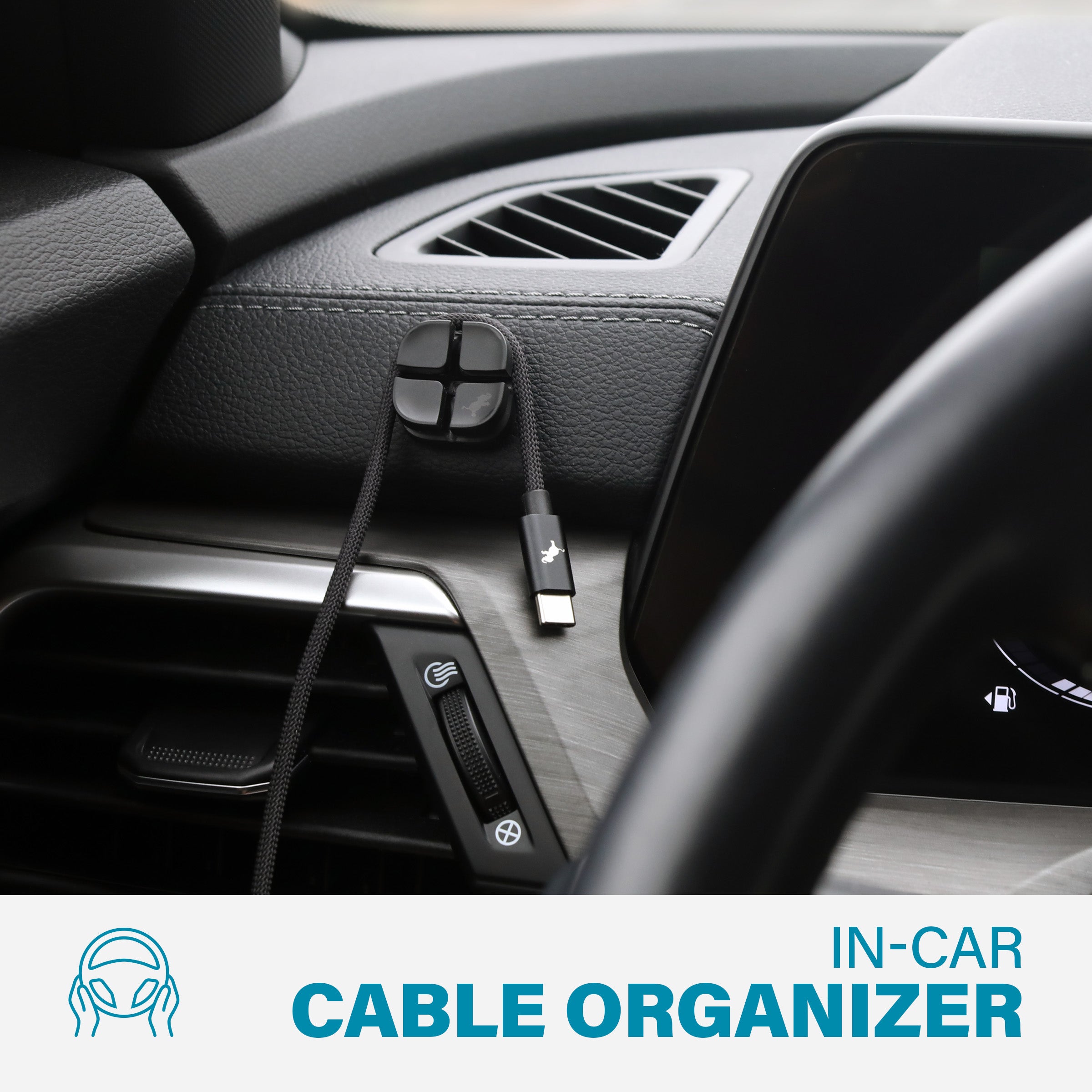 This compact accessory will keep your space tidy, and cable secure. Easily attaches to any dashboard or desk surface. Features intersecting holding slots to ensure a snug fit for your cable.